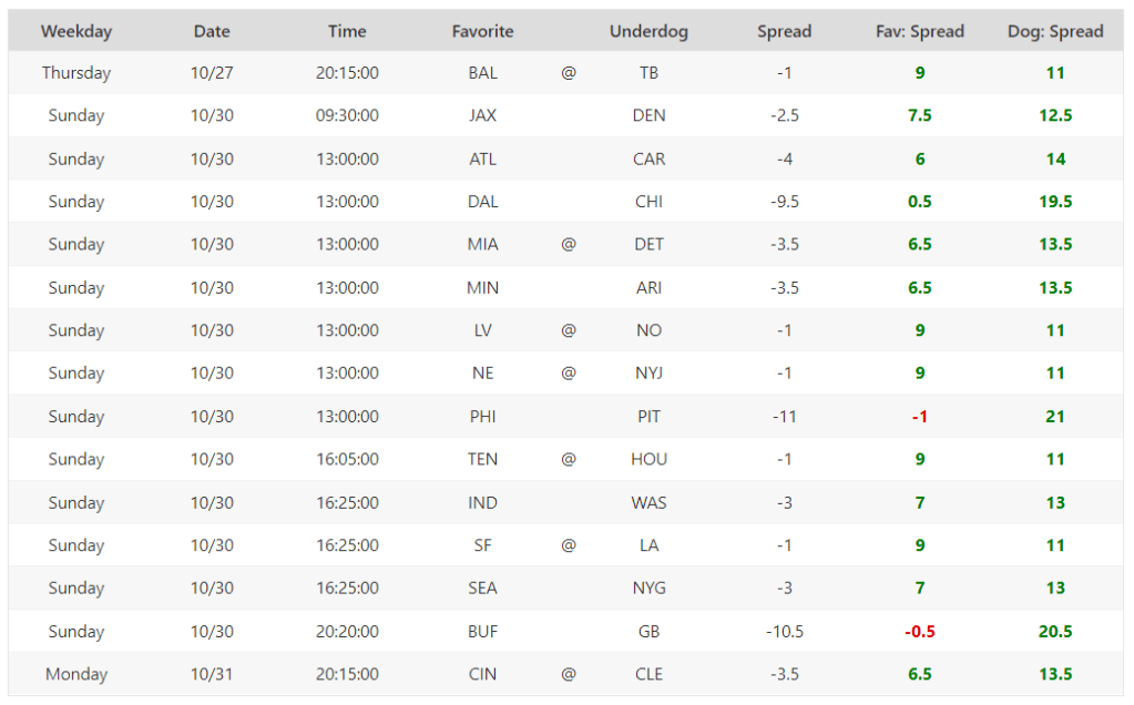 (Note that the spreads come from PaddyPower.com or Bovada.lv, depending on which site I’m gambling on a given week).