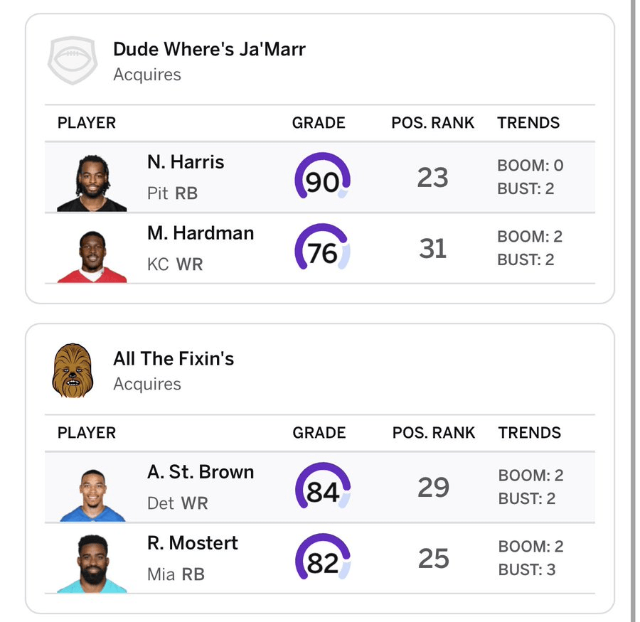 Fantasy Football Trades. First off, I acknowledge that nobody cares about my fantasy football team (or anyone else’s) and that nobody wants to hear details of individual trades. That’s not what this is… well I mean look at this: